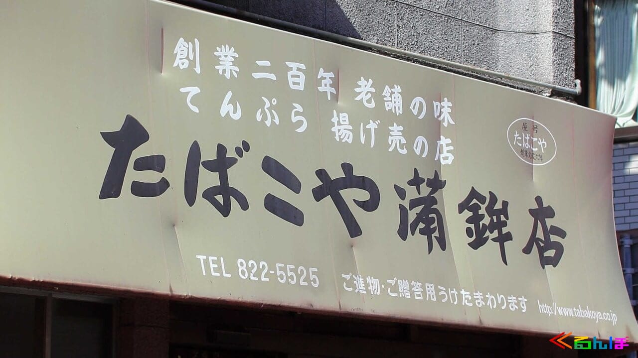 「たばこや」と書いてありますが練り物屋さんです。年季の入った外観に、「本場さぬきの天ぷら」と書かれた小さな立て看板が目印です。