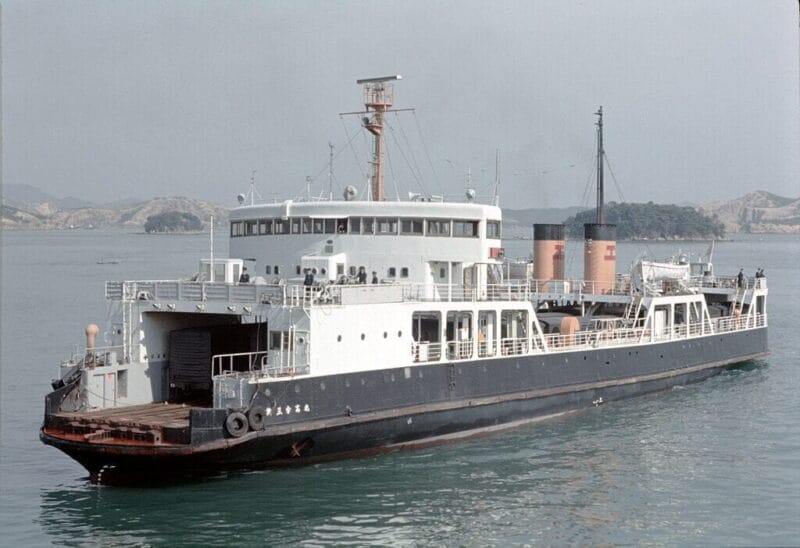 また、戦後の高度成長期にはいり、日本のモータリゼーションが急激に進展すると、自動車を航送する需要が旺盛になってきました。宇野港にも第一突堤が完成し、新規の定期船の発着が可能になると、民間の貨物定期航路が相次いで就航しました。